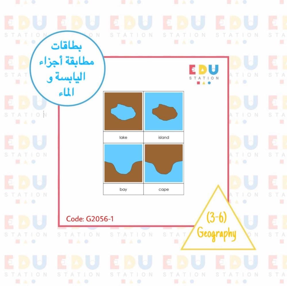 بطاقات مطابقة اجزاء اليابسة والماء - حجم كبير (عربي)