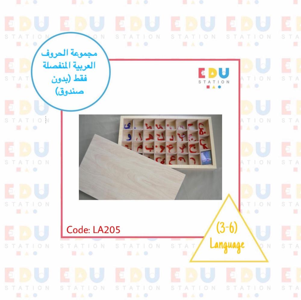 مجموعة من حروف الاكريليك الملونة باللونين الأحمر والأزرق (لحروف العلة) تحتوي على شكل الحرف الصحيح (المنفصل).
