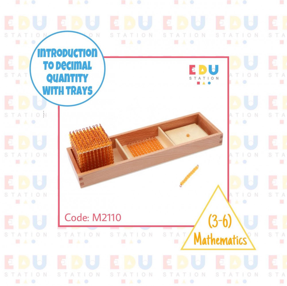 عدد ١ حبة خرز ذهبي، عدد ١ قضيب عشري، عدد ١ مربع ذهبي، و عدد ١ مكعب ذهبي.